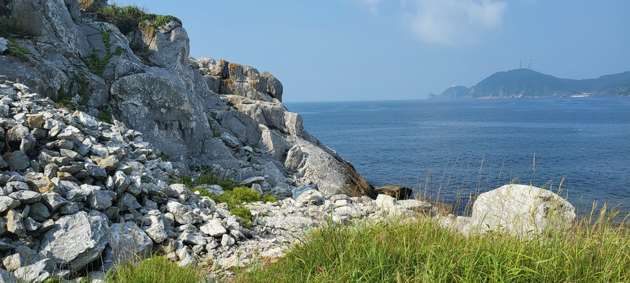 분바위를 관람한 우리는 나뉘어 소청 등대로 가고, 나머지는 대리석 광산으로 향했다. 지질공원 해설사는 우리와 동행하여 설명을 자세히 해준다. 이곳은 8억 년 전, 지구의 비밀을 알 수 있는 지질 명소로, 해저에서 퇴적된 석회암이 지각변동으로 열과 압력을 받아 대리석으로 변하였다. 일제강점기 마을에서 가깝고 운송이 편한 곳 대리석은 집중적으로 채굴했고, 깊은 골짜기만 그들의 눈을 피할 수 있었다. 예전에는 실제로 대리석을 채굴해 건축자재, 조각 재로 사용했으나 지금은 채석이 중단돼 그 흔적만 남아있다. 하얀 돌이 부서져 뒹구는 채석장에는 조개껍데기 같은 바위와 기왓장처럼 얇고 단단한 돌이 차곡차곡 쌓였다. 우리나라에 남아있는 대리석 광산 네 곳 중 하나로 알려진 이곳 소청도 광산은 단순한 채석장이 아니라 퇴적암이 변성암으로 바뀌는 과정을 보여주는 지질 유산의 현장이다.