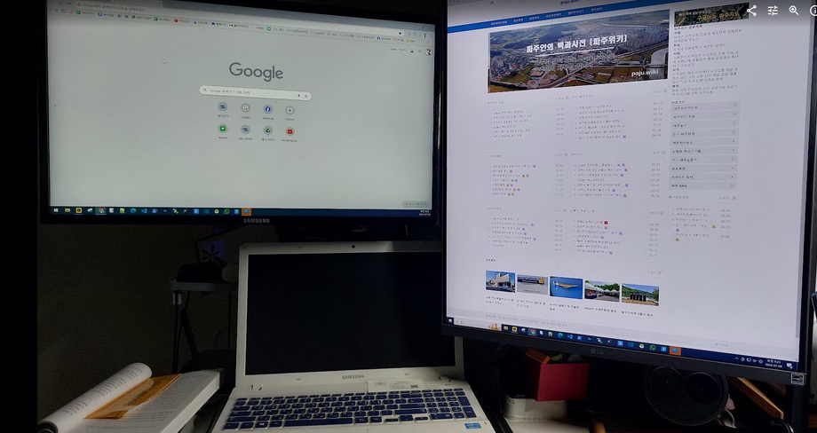 지금은 퇴직하고 '파주위키'라는 사이트를 운영하고 있다. 내가 좋아하는 일이어서 컴퓨터 앞에 많이 앉아야만 일이 진행된다. 그래서 나는 컴퓨터 앞에 앉아 있을 때가 편안하다.